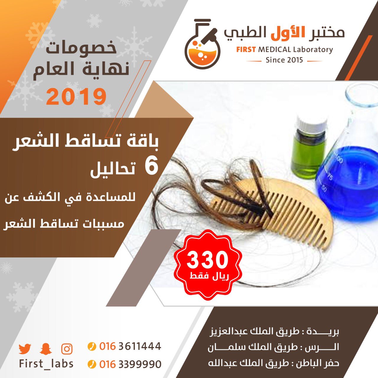 مختبر الأول الطبي בטוויטר خصومات نهاية السنه باقة تساقط الشعر ٦ تحاليل للكشف عن مسببات تساقط الشعر ٣٣٠ خصم على باقي التحاليل الفرديه ٥٠ خصم على الباقات الأخرى ١٠ و غيرها من